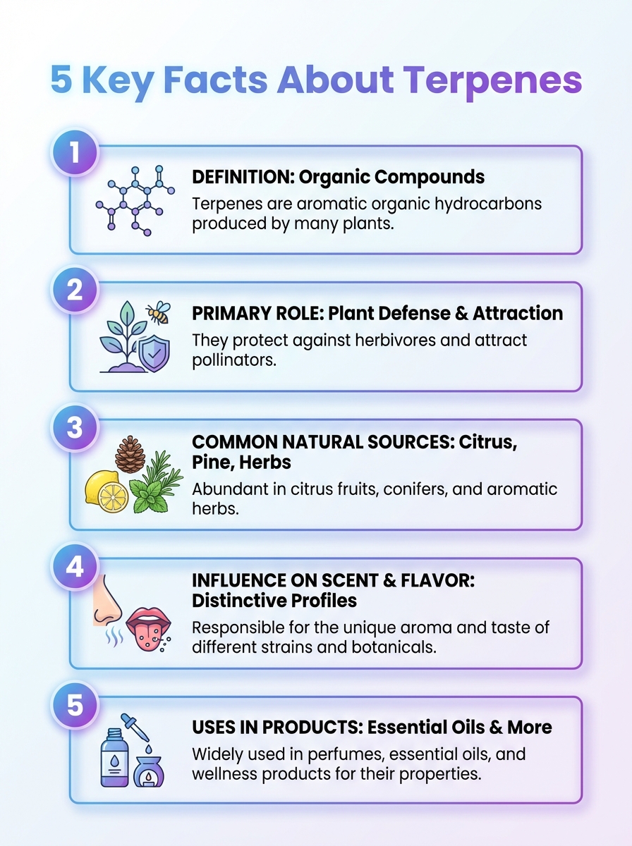 Explore five essential facts about terpenes. Learn what terpenes are and their roles in plants and products.